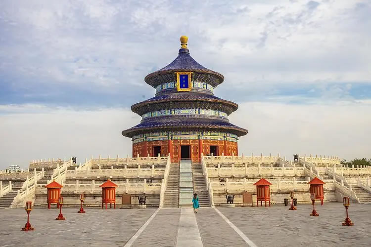 - 特色:天壇的標(biāo)志性建筑,三重檐圓殿,藍(lán)色琉璃瓦象征藍(lán)天,殿內(nèi)無大梁長檁,僅靠28根楠木巨柱支撐。