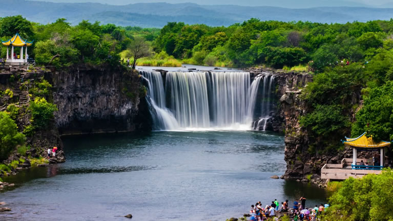鏡泊湖位于黑龍江省牡丹江市寧安市渤海鎮(zhèn)瀑布村,是五千年前火山噴發(fā)形成的火山熔巖堰塞湖,也是世界最大的火山熔巖堰塞湖。景區(qū)現(xiàn)為國家AAAAA級旅游景區(qū)及世界地質(zhì)公園,總面積達1726平方公里,包含百里長湖景區(qū)、火山口原始森林景區(qū)、渤海國上京龍泉府遺址景區(qū)三大部分。這里湖光山色秀美,火山地質(zhì)奇觀獨特,歷史人文景觀豐富,是集科研、避暑、游覽、觀光、度假和文化交流于一體的綜合性景區(qū)。