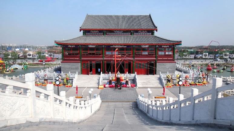 - 第一景區(qū):位于唐津運(yùn)河的北端,占地2650畝,包括惠豐湖公園、運(yùn)河唐人街和東方神龍樂(lè)園三部分。