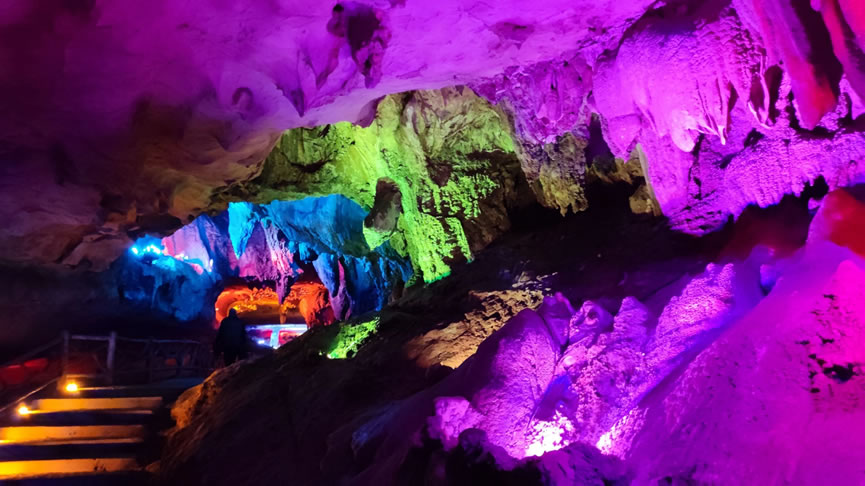 - 景區(qū)核心景點(diǎn),全長約1600米,洞內(nèi)鐘乳石千姿百態(tài),色彩斑斕。