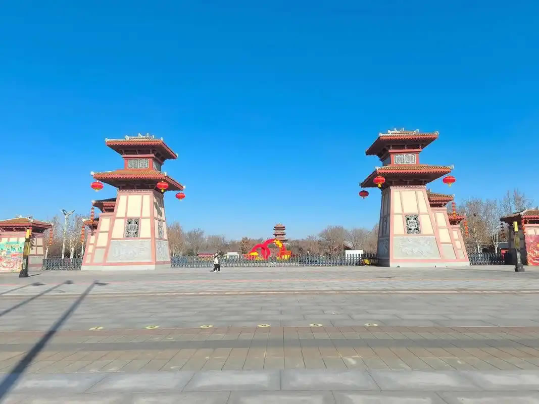 - 軒轅閣:園區(qū)地標(biāo),高38米,仿春秋戰(zhàn)國時(shí)期建筑,登頂可俯瞰全園。