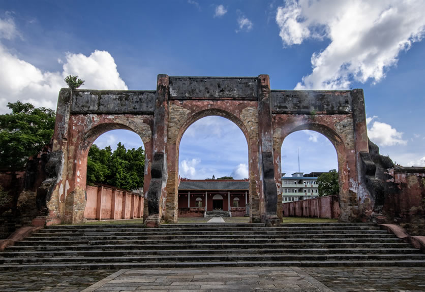 - 特色:古城唯一保留下來(lái)的城門,紅墻綠瓦,仿宮殿樓臺(tái)式建筑,分兩層,底層為甕城,中開(kāi)拱門,雄偉壯觀。