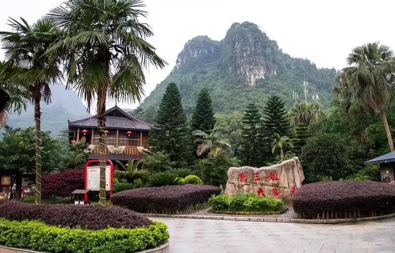 - 文化地標(biāo):金蟾對(duì)歌臺(tái)、夢(mèng)幻歌圩、侗家歌臺(tái)、百年古榕(劉三姐與阿牛哥定情地)。