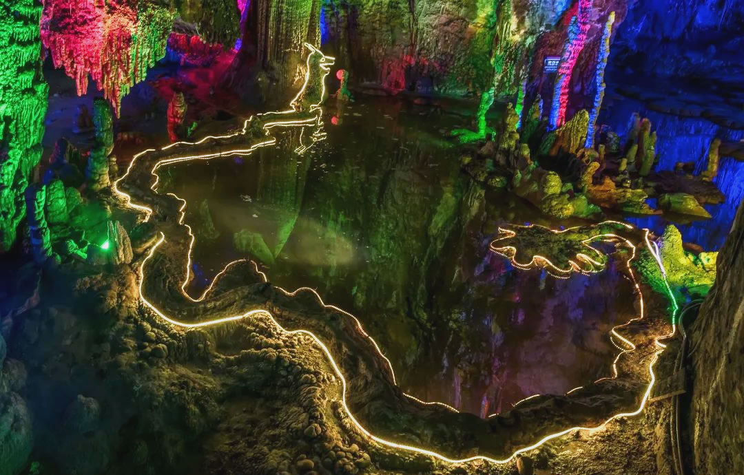 - 龍母后宮:鐘乳石密度達每立方米5根,燈光映射下呈現翡翠色光澤