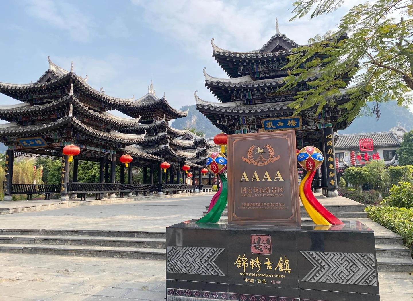 錦繡古鎮(zhèn),位于廣西壯族自治區(qū)百色市靖西市。古鎮(zhèn)一期工程于2018年12月26日正式開街,依托靖西山水資源和壯族文化,以復(fù)興城市文脈為主線,打造壯族文化傳承載體和旅游集散中心。項(xiàng)目涵蓋文化體驗(yàn)、休閑娛樂、餐飲住宿等功能,建筑融入燈籠、銅鼓等壯族元素,具有濃厚民俗特色。古鎮(zhèn)建筑融合壯族民俗元素,如雕梁畫棟、銅鼓、繡球等,分為文旅商業(yè)街區(qū)、小吃燒烤區(qū)、主題客棧區(qū)等。以壯族文化、邊境文化、生態(tài)養(yǎng)生為主題,提供“吃住行游購?qiáng)?rdquo;全方位體驗(yàn)。古鎮(zhèn)建成后素有“小桂林”之稱,描繪出小橋流水的壯鄉(xiāng)畫卷。