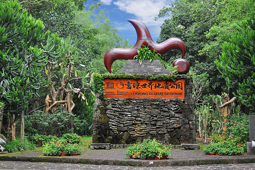 中國(guó)雷瓊世界地質(zhì)公園位于中國(guó)南端,地處廣東省湛江市雷州半島(雷)和海南省?谑校ō偅,由湛江園區(qū)、?趫@區(qū)與瓊州海峽組成,面積為3050平方千米。公園地區(qū)多期次的火山噴發(fā)形成的獨(dú)特的地理、地質(zhì)環(huán)境,造就了公園廣闊的玄武巖臺(tái)地、豐富的火山地貌以及火山巖海蝕地貌與海積地貌等地質(zhì)遺跡景觀,也造就了當(dāng)?shù)鬲?dú)特的火山文化。公園以?隈R鞍嶺等為代表的第四紀(jì)火山帶聞名于世,更有以湖光巖為代表的瑪珥湖堪稱研究全球古氣候、古環(huán)境變化的“天然年鑒”。