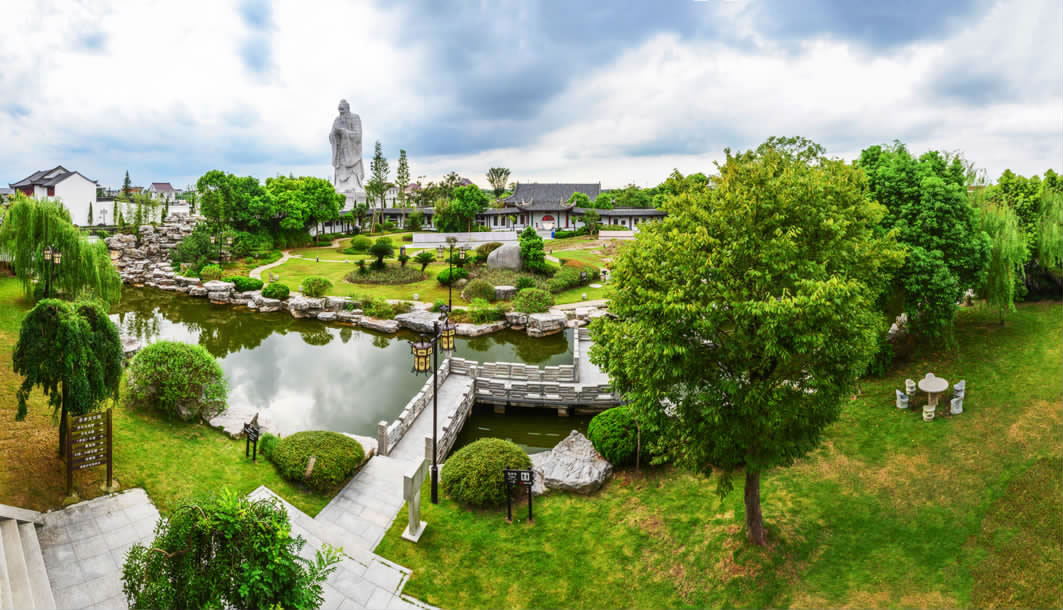 忠孝文化園位于江蘇省南通市通州區(qū)東社鎮(zhèn)鎮(zhèn)區(qū)北側(cè)500米,占地面積160畝,總投資3.2億元,分四期工程建設(shè),由同濟大學(xué)設(shè)計為具有明末清初風(fēng)格的江南園林式建筑。該園以陸鳳彬?qū)④娮嬲瑸榛A(chǔ)建造,2008年11月竣工開園,是國內(nèi)首個以"忠孝"為主題的人文景觀。園區(qū)主體建筑包含思苑樓、忠孝坊、中華柱、忠孝文化長廊及六角忠孝亭,陳列24忠24孝故事石刻、《孝經(jīng)》石刻長卷和唐至近現(xiàn)代硯臺50余方。園內(nèi)矗立國內(nèi)最高孔子石雕像,通高32米,由480余塊石質(zhì)部件拼接而成,重約千噸,以唐代吳道子畫像為藍本雕刻。聚寶閣收藏四大偉人紅木雕像、百名將軍墨寶及趙樸初等書法家作品。該園免費對外開放,設(shè)有愛國主義教育展廳、國防教育展區(qū)及多功能影視廳,年均舉辦道德講堂、主題展演等教育活動百余場。配套服務(wù)設(shè)施包含水上餐廳、垂釣中心及可容納300人的宴會廳。