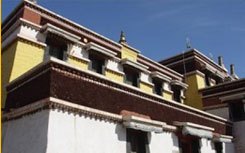 現(xiàn)存六大經(jīng)堂為蘇古沁殿、洞科爾殿、卻伊日殿(顯教經(jīng)堂)、當(dāng)圪希德殿、阿會(huì)殿(密宗經(jīng)堂)、日木倫殿(菩提道學(xué)經(jīng)堂)等。蘇古沁殿為全寺集會(huì)誦經(jīng)之所。這些殿宇規(guī)模宏大,均為典型的藏式建筑群。殿內(nèi)塑像、壁畫、唐卡(卷軸佛畫)俱全,各殿各有特色,或立高達(dá)十米的釋迦牟尼銅像,或供高達(dá)九米的黃教始祖宗喀巴銅像,或護(hù)法金剛像,或供奉白度母和綠度母塑像等。三座活佛府邸在阿會(huì)殿的南面,其中洞科爾活佛府規(guī)模宏大,為第二世活佛熱西尼瑪于乾隆四十九年(公元1784年)所建。左右是接待多倫諾爾匯宗寺甘珠爾瓦呼圖克圖和章嘉國(guó)師而建造的兩座府邸。