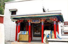 原名努尼殿,是供僧人靜坐休持的殿,用于喇嘛們以逐漸減少飲食,靜坐默誦,力圖不食不語的修行方式去解脫超度眾生靈。后來毀于文革動(dòng)亂。2003年國(guó)家撥款在遺址上恢復(fù)并擴(kuò)建此殿,2005年9月開始對(duì)外開放,全殿上下兩層,一樓為佛堂,供有千手千眼觀音像、六世班禪大師、宗喀巴大師像,正中供奉的三世佛為銅鑄鍍金佛像。墻上所繪壁畫是藏傳佛教九大佛寺壁畫。