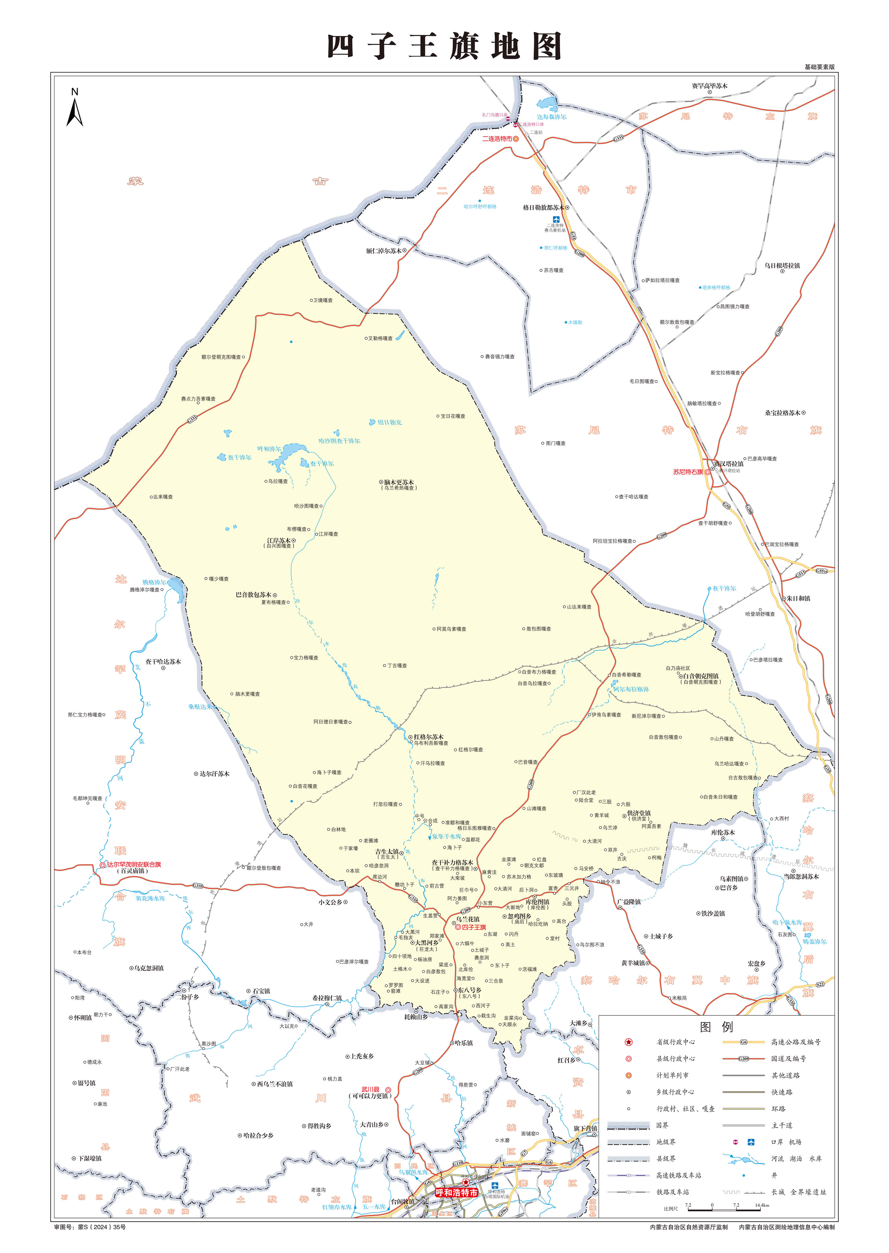 四子王旗轄5個(gè)鎮(zhèn)、2個(gè)鄉(xiāng)、4個(gè)蘇木、1個(gè)牧場(chǎng):