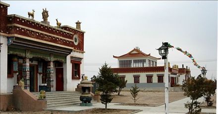 位于吉林省白城市至興安盟阿爾山市鐵路線上,在烏蘭浩特市東南30千米洮兒河左岸,廟址座落在陶賴圖山南坡腳下,方位東南,葛根廟在內(nèi)蒙古東部區(qū)歷史悠久,是東部十個(gè)旗供養(yǎng)的藏傳佛教寺廟。葛根廟前身為蓮花圖廟,鼎盛時(shí)期以五大殿堂為主,配有葛根宮、法輪宮、葛根陵等七殿堂,共有鍍金銅佛5073尊、石佛像35尊、泥佛像500尊,《甘珠爾》和《丹珠爾》等經(jīng)文1868卷。