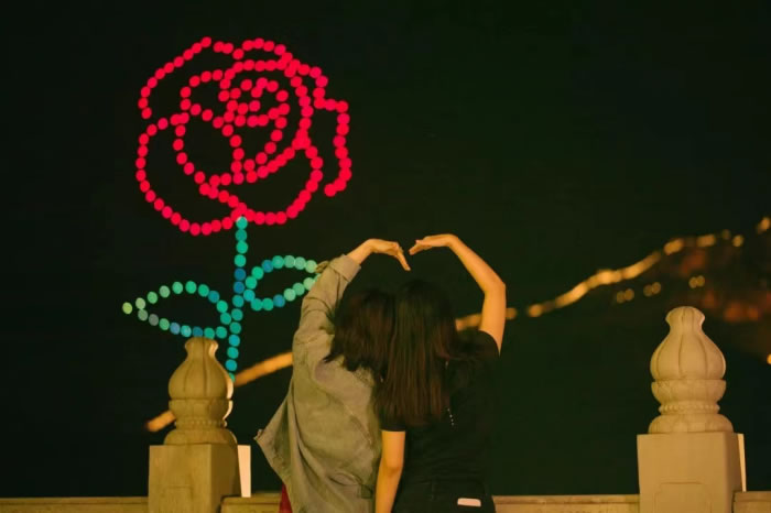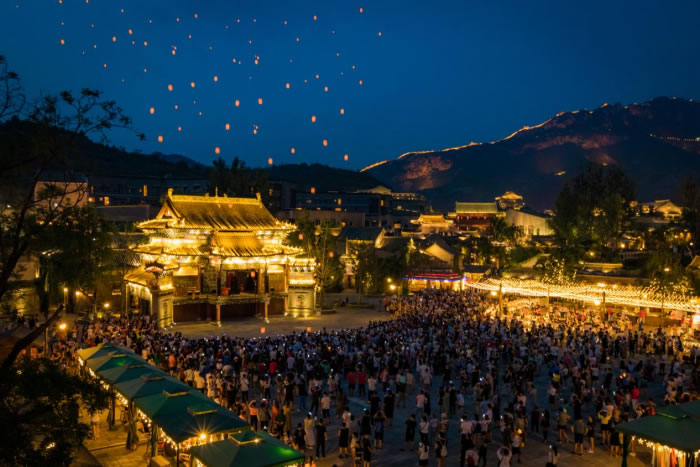 作為京郊高品質(zhì)度假勝地,古北水鎮(zhèn)全年接待游客量近300萬(wàn),并接連獲得“全國(guó)首批國(guó)家級(jí)夜間文化和旅游消費(fèi)集聚區(qū)”、“全國(guó)非遺旅游景區(qū)”、“北京市旅游度假區(qū)”等多項(xiàng)榮譽(yù)。多彩的夜間活動(dòng)是在景區(qū)內(nèi)游玩的熱點(diǎn)項(xiàng)目,而最受游客喜愛(ài)的當(dāng)屬每日的無(wú)人機(jī)表演。據(jù)景區(qū)工作人員介紹,本次活動(dòng)期間,每一個(gè)節(jié)日都將呈現(xiàn)專屬定制畫面。夜色漸濃,散發(fā)著微黃暖光的孔明燈,隨著悠揚(yáng)的音樂(lè)緩緩升起,在司馬臺(tái)長(zhǎng)城的映襯下變化出紛繁的圖案,為游客帶來(lái)一場(chǎng)絢麗璀璨的視覺(jué)盛宴。