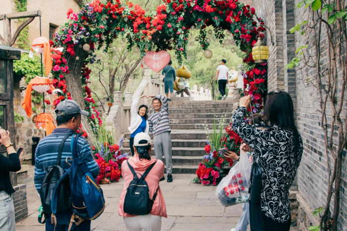 全新打造的打卡花墻、繽紛亮相的鵲橋拱門、經(jīng)典夢(mèng)幻的剪影亭,將把整個(gè)景區(qū)的氛圍感拉滿。游客漫步在景區(qū)的青石板街上,閑游小鎮(zhèn)的山水間,自行解鎖新鮮的拍照打卡點(diǎn)。5月20日-5月21日,古北水鎮(zhèn)在不同時(shí)間段,為前來(lái)合照留影的游客準(zhǔn)備了不同的鮮花,作為“愛(ài)的紀(jì)念”。