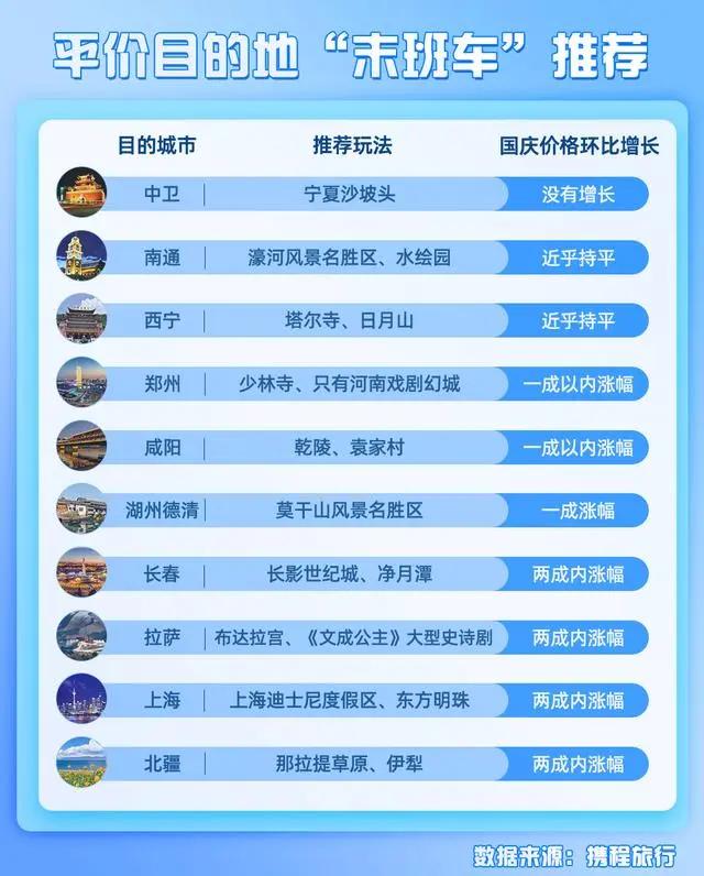 臨近假期,機(jī)票、酒店漲價(jià)令許多消費(fèi)者望而卻步。但八天的假期閑在家里又實(shí)在無聊,有沒有適合趕“末班車”的“平價(jià)目的地”?成為眾多消費(fèi)者心中的難題。