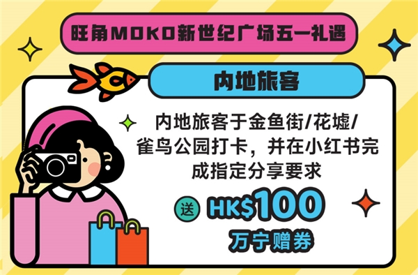 針對游客需求的變化,香港政府推出相關(guān)扶持政策,以支持區(qū)域特色打卡發(fā)展。以香港最著名的旅游區(qū)、購物區(qū)和美食區(qū)旺角為例,為了迎接內(nèi)地游客,香港政府在金魚街、花墟、雀仔公園設(shè)置不同打卡裝置。當?shù)氐纳虉鲆餐ㄟ^各種舉措歡迎內(nèi)地游客。旺角地標MOKO新世紀廣場面向內(nèi)地游客推出專享優(yōu)惠“日夜打卡繽紛禮”,于以上景點打卡分享到小紅書社交媒體及完成指定要求,可免費領(lǐng)取總值100港幣的萬寧贈券一份,一鍵PO出雙倍快樂。