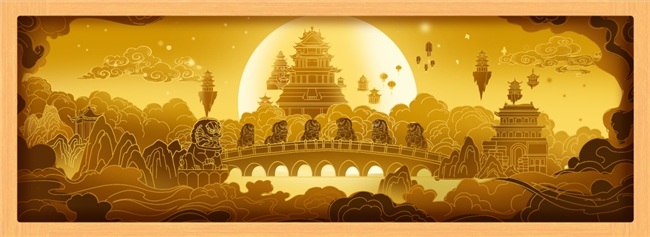 盧溝曉月紙雕燈:紙雕燈圖案,靈感來自“盧溝曉月”燈組,曙光未露、明月映照下,盧溝橋的美景盡收眼底。行走在游園燈會中,打一盞紙雕燈,氛圍感滿滿~