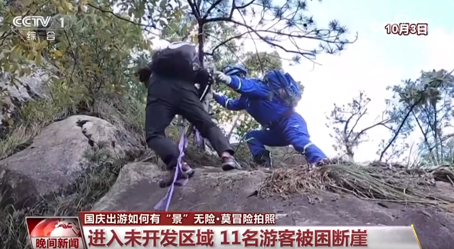 10月2日傍晚,有11名外地游客在安徽績(jī)溪縣一座未開發(fā)的山上攀爬時(shí),因?yàn)槊月穼?dǎo)致被困,當(dāng)?shù)毓埠兔耖g救援隊(duì)立即展開聯(lián)合救援。在3日凌晨一點(diǎn)多,救援人員找到了被困游客,由于游客被困的地方是未開發(fā)的區(qū)域,山勢(shì)十分陡峭,且有多處斷崖,救援人員只能反復(fù)利用繩索,將被困游客挨個(gè)兒送至安全地帶。
