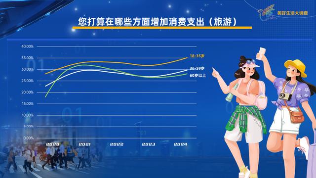 《美好生活大調(diào)查》發(fā)現(xiàn),2024年在國人消費(fèi)意愿榜上,旅游又一次站到了榜首的位置。這已經(jīng)是5年來,旅游第三次站在消費(fèi)意愿榜的第一名,今年更是達(dá)到了5年來的最高點(diǎn)。