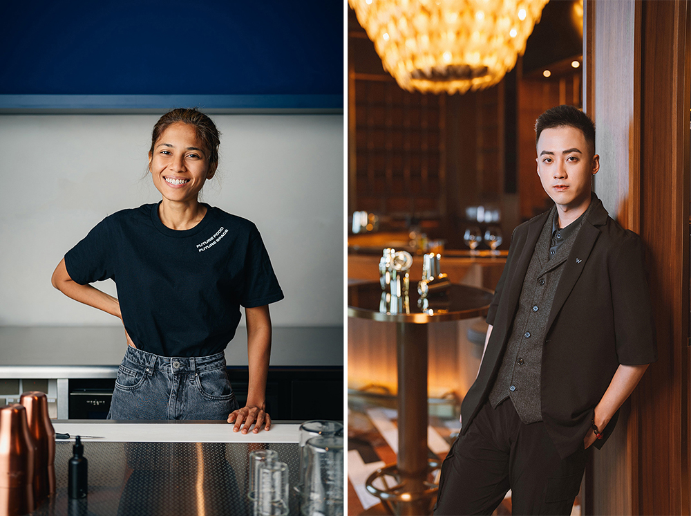 Sasha (左) 是Fura 的合伙人及調酒師,她一向追尋以創(chuàng)新的方式融合各種食材,制作出風味獨特又環(huán)保的飲品。 澳門新濠影匯W酒店首席調酒師Samio (右) 獨具匠心,致力于以不同構思設計出令人驚嘆的作品,期望每一杯飲品都能為賓客帶來難忘的體驗。
