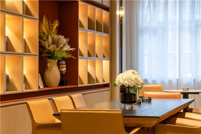 酒店共設(shè)125間豪華客房,涵蓋高級(jí)房、行政房、親子房及行政套房等多種房型。設(shè)計(jì)以“海棠紅”與“寶石紅”為主色調(diào),融合現(xiàn)代雅致與地域文化元素,營造淡泊素雅的藝術(shù)氛圍?头颗鋫渲悄苷Z音助手、智能門鎖、燈光控制系統(tǒng)等科技設(shè)施,打造沉浸式智慧旅居空間。公共區(qū)域還設(shè)有大堂吧、書吧、茶室、中餐廳、會(huì)議室、健身房、洗衣房等配套設(shè)施,滿足賓客的多元需求。