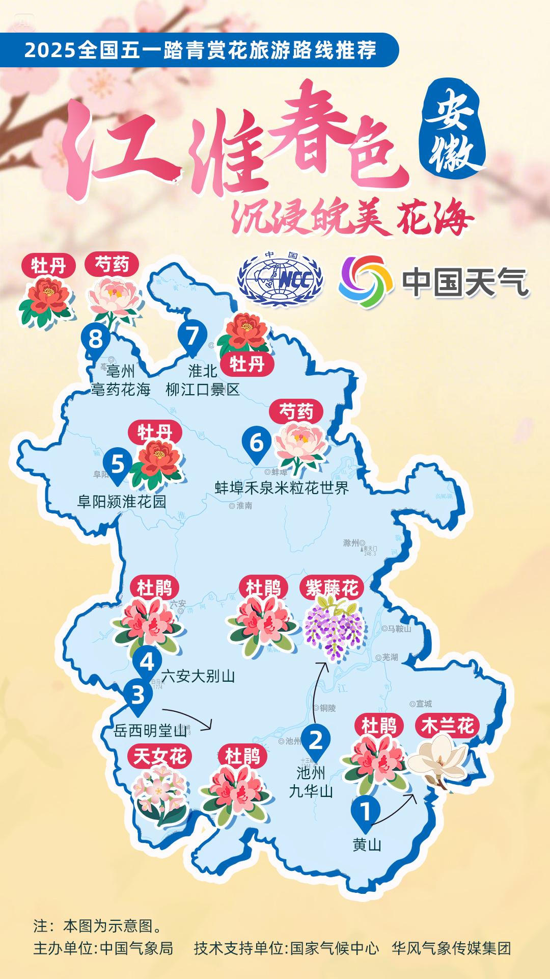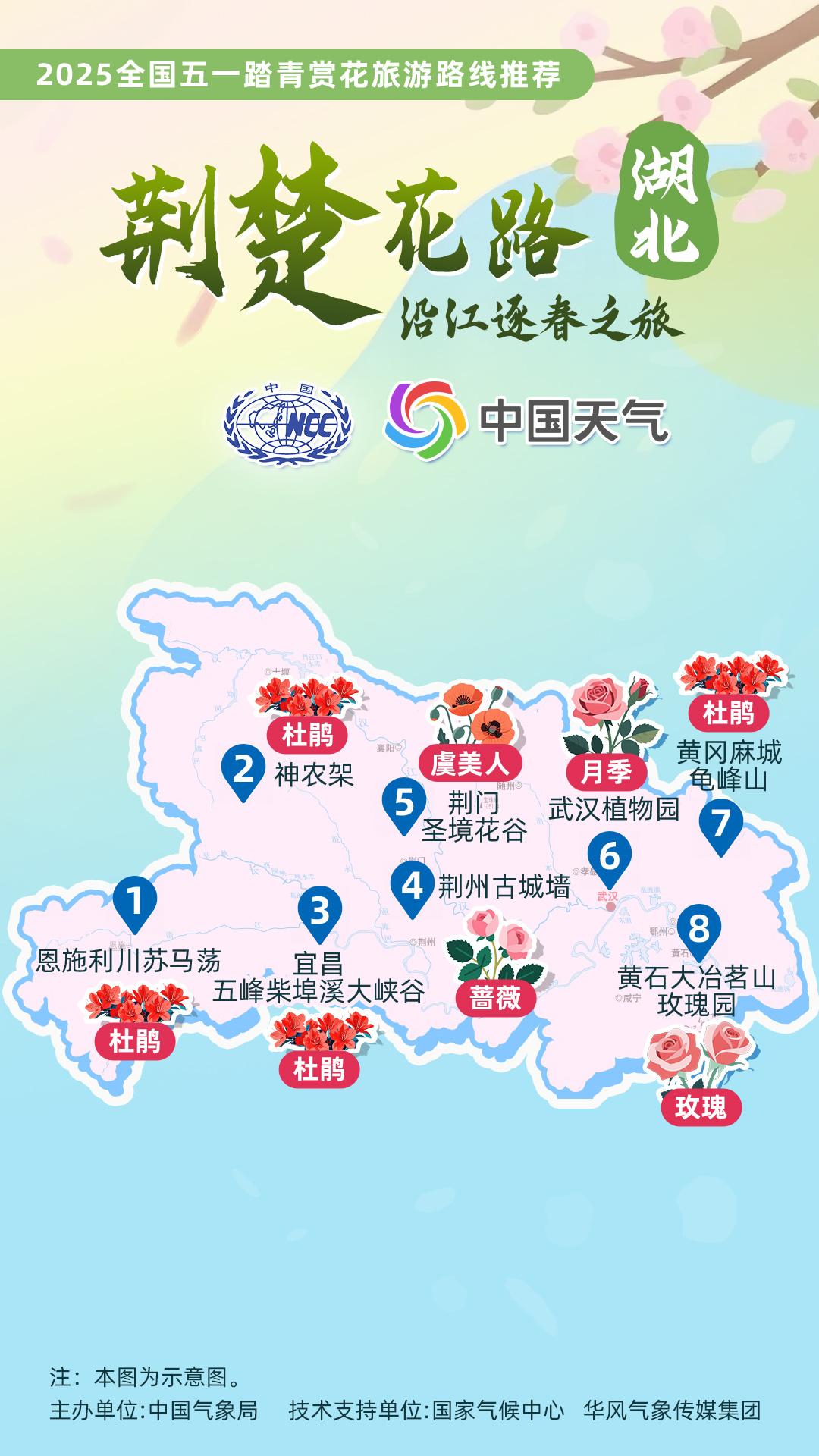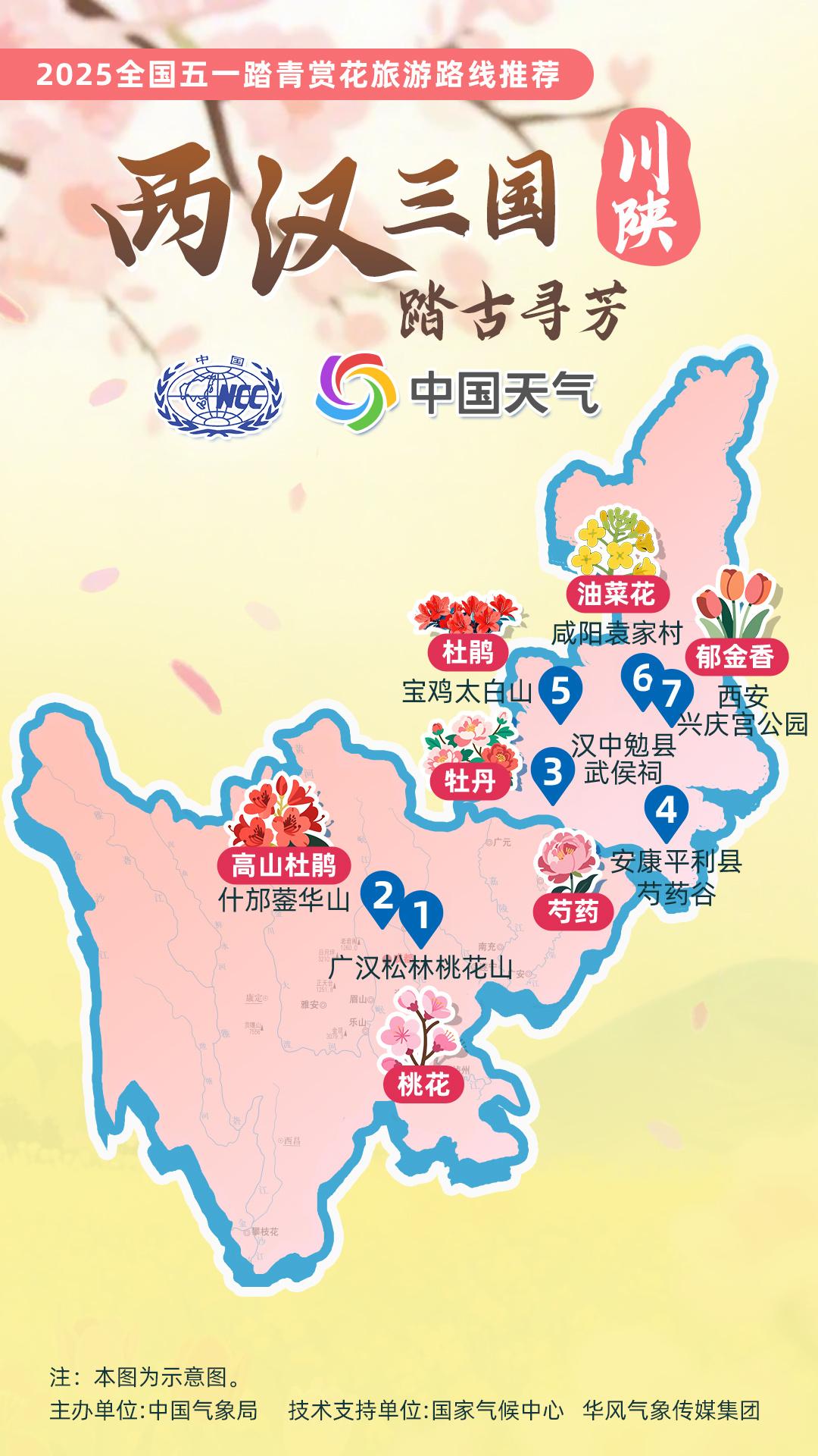 正值杏花、杜鵑花等春花盛放時(shí)節(jié),中國氣象局針對(duì)全國景點(diǎn)主要花品,對(duì)其生長積溫和物候期進(jìn)行關(guān)聯(lián)性分析,建立多種花品的最佳觀賞期預(yù)報(bào)模型,提供賞花預(yù)報(bào)服務(wù)。在此基礎(chǔ)上,國家氣候中心、華風(fēng)氣象傳媒集團(tuán)依據(jù)歷史氣候資料和今年氣候預(yù)測(cè),參考花期模型預(yù)報(bào)結(jié)果,結(jié)合區(qū)域地理分布、小氣候特征和旅游景點(diǎn)等信息,推出4月下旬至5月上旬適宜踏青賞花的線路。
