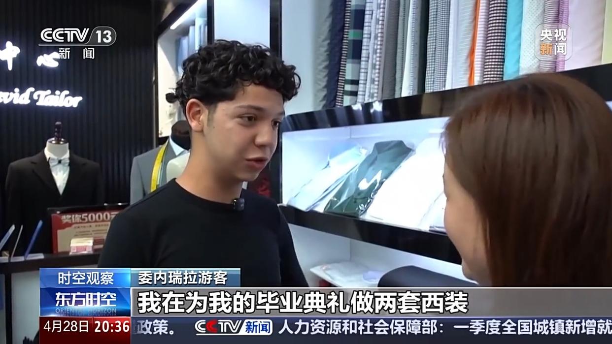 委內(nèi)瑞拉游客:我在為我委內(nèi)瑞拉的畢業(yè)典禮做兩件西裝,我姐姐她正在挑選中式連衣裙。