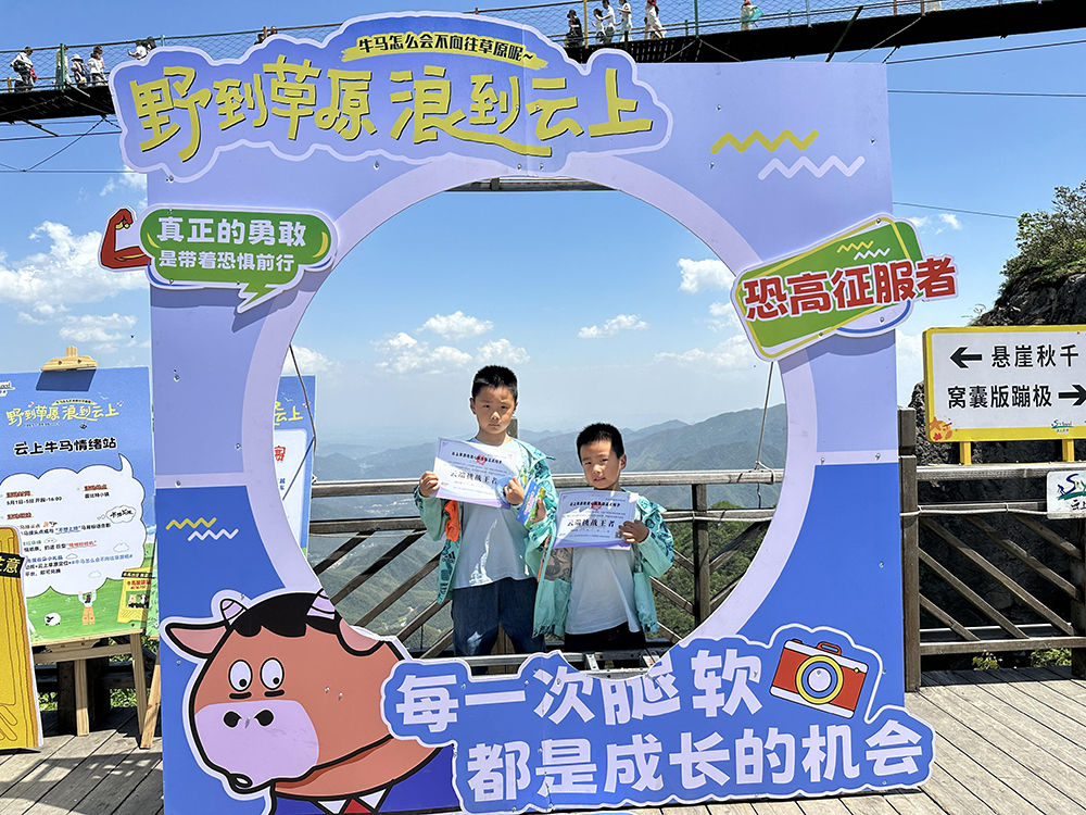 懸崖秋千、窩囊蹦極、飛拉達(dá)·懸崖穿越等六大極限項目挑戰(zhàn)賽正如火如荼進(jìn)行中。不少游客在“步步驚心”高空索道上顫抖前行,卻仍高舉手機(jī)記錄驚險瞬間。完成挑戰(zhàn)者可現(xiàn)場領(lǐng)取“勇氣證書”。