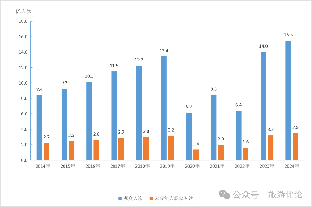 2014—2024年全國(guó)文物機(jī)構(gòu)接待觀(guān)眾人次及未成年人觀(guān)眾人次
