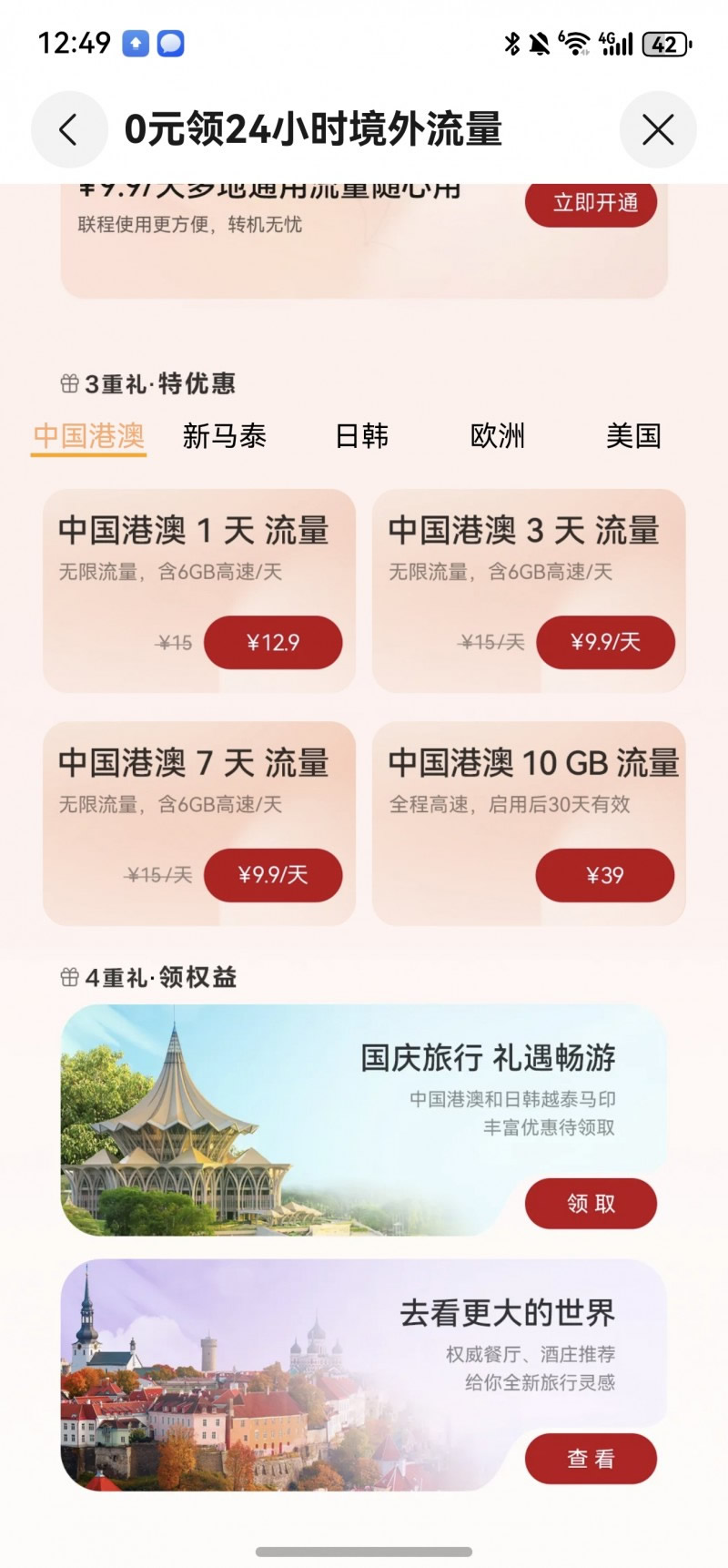 天際通「十月暢行月」第四重禮·領(lǐng)權(quán)益,天際通聯(lián)合全球合作伙伴,為用戶提供超值旅游權(quán)益包,覆蓋Grab打車、Klook景點(diǎn)門票、酒店餐飲等場(chǎng)景,在馬來西亞、泰國、歐洲等地均可享受出境專屬折扣。