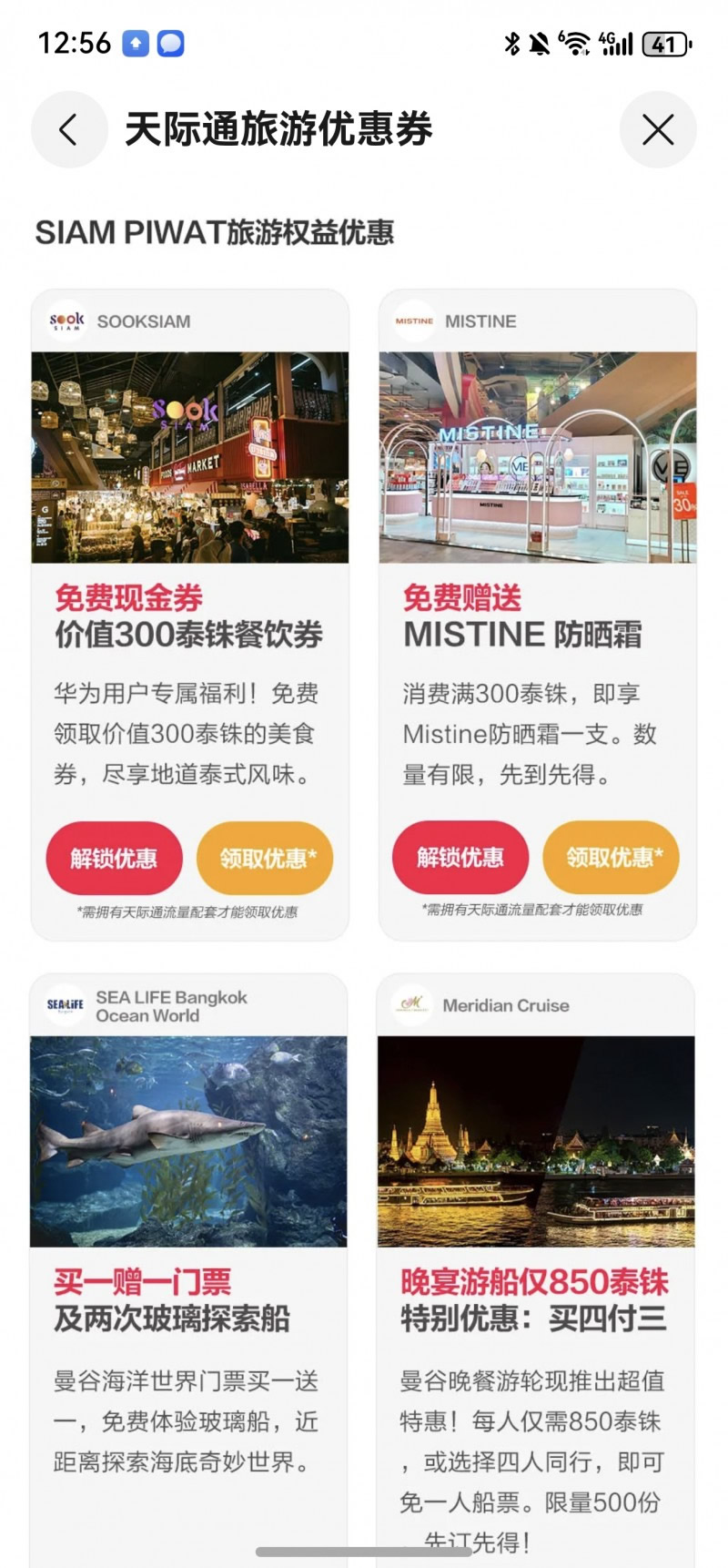 華為手機(jī)用戶開啟天際通流量后,可以在泰國、馬來西亞、越南、印尼免費(fèi)領(lǐng)取Grab游客優(yōu)惠禮包,憑Grab優(yōu)惠禮包即可享受精選服務(wù),包括機(jī)場(chǎng)接送、打車折扣、外賣餐飲、超市購物等出游場(chǎng)景,輕松暢游東南亞。還可領(lǐng)取Klook旅游權(quán)益優(yōu)惠,無論您是在中國香港&澳門暢游看夜景,還是在日本觀賞和風(fēng)之美,在韓國感受韓風(fēng)潮流、越南邂逅燈火古鎮(zhèn),即可享受景點(diǎn)購票全單95折優(yōu)惠。在活動(dòng)頁還可領(lǐng)取朗廷卓逸會(huì)全球酒店住宿禮遇及專屬優(yōu)惠房價(jià),共覆蓋全球超過30家知名酒店。