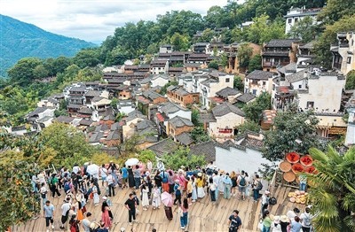 江西省婺源縣篁嶺村“曬秋”美景,吸引眾多游客前來游覽。