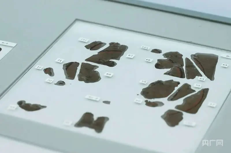 部分長沙子彈庫戰(zhàn)國帛書(央廣網(wǎng)記者黃珂嵐 攝)