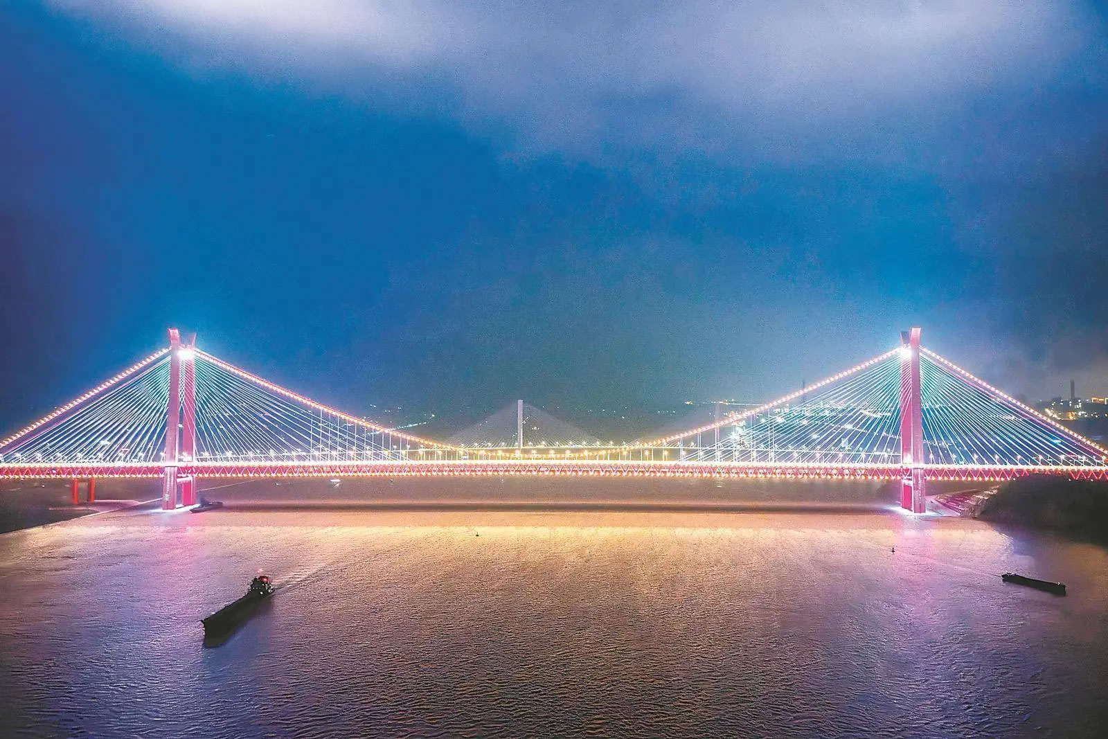 10月21日晚,銅陵長江三橋燈光璀璨。夜景照明工程技術(shù)人員已完成亮化設(shè)施安裝調(diào)試,正在對燈光效果進(jìn)行最終優(yōu)化。據(jù)了解,該橋梁夜景照明工程范圍為跨江公鐵合建主橋,總長1505米,安裝了3000余盞燈具。當(dāng)夜幕降臨,大橋化作江面的“光影長虹”,成為一道嶄新的風(fēng)景線。(儲著傳 攝)