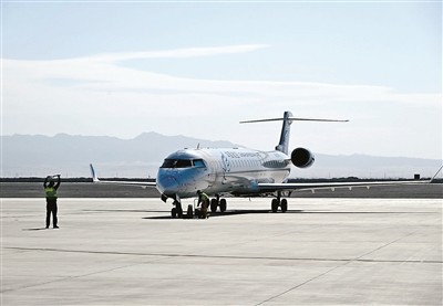 昨日,敦煌至哈密冬春航季首航航班降落在敦煌莫高國際機場
