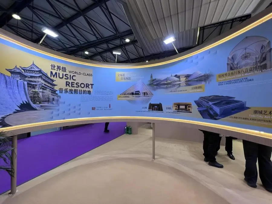 “鹽官古城-潮樂之城”整體保護(hù)項(xiàng)目,是文旅部“音樂科技融合應(yīng)用”首批試點(diǎn)單位,總占地面積3100畝,總建筑面積120萬(wàn)平方米。頂度集團(tuán)打造室內(nèi)特大型劇場(chǎng)潮城藝術(shù)中心,從瑞士遷徙而來(lái)的世界最大木質(zhì)音樂廳萬(wàn)國(guó)歌劇院、亞洲首家奧地利“維也納音樂之家”授權(quán)互動(dòng)博物館等9大世界級(jí)藝術(shù)場(chǎng)館、主唱音樂度假酒店、宣德門酒店等9家音樂主題酒店,13家主題民宿等完整的音樂產(chǎn)業(yè)生態(tài)和豐富的業(yè)態(tài)配套,展現(xiàn)了一個(gè)世界級(jí)音樂度假目的地。