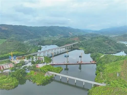 2025年10月,建設(shè)中的那蒙澄碧河特大橋橋墩拔地而起(施懿宸 何春龍 攝)