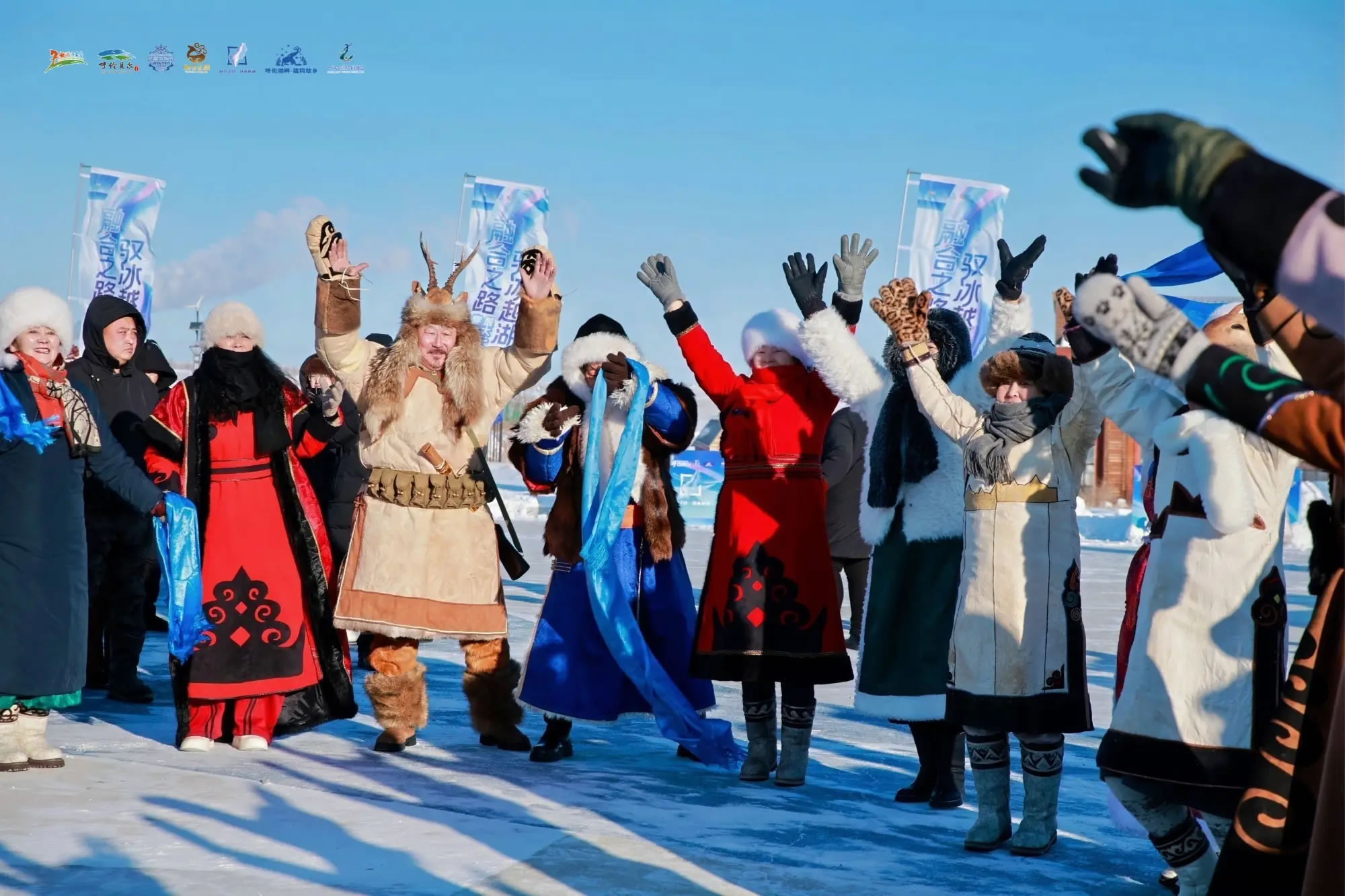 冬日的呼倫湖冰封如鏡,蔚為壯觀。開幕式通過播放活動先導(dǎo)片,系統(tǒng)介紹了活動背景與主題內(nèi)涵。據(jù)了解,本次活動以鄂倫春嘎仙洞至呼倫湖的“融合之路”為文化脈絡(luò),通過點燃火種、自駕穿越冰湖的方式,串聯(lián)歷史記憶、人文精神與冰雪體驗,展現(xiàn)北疆大地獨特的文化底蘊(yùn)。活動現(xiàn)場,多民族傳統(tǒng)歌舞情景表演輪番上演,融合地域文化元素與現(xiàn)代冰雪理念的火炬臺被點燃,將現(xiàn)場氣氛推向高潮。