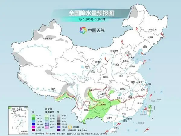 具體來看,中央氣象臺(tái)預(yù)計(jì),今天,西北地區(qū)東南部、河南西部、湖北西部、川西高原北部、貴州西北部、青海南部、西藏南部和東部等地部分地區(qū)有小到中雪或雨夾雪;四川盆地、湖北大部、湖南北部、貴州中東部、云南大部等地部分地區(qū)有小雨,其中,云南南部等地部分地區(qū)有中雨。