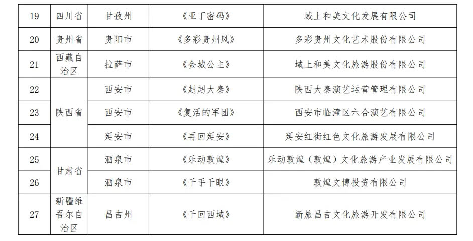 第二批全國(guó)旅游演藝精品名錄發(fā)布 27個(gè)項(xiàng)目入選
