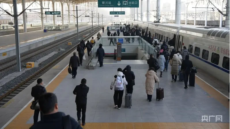 乘客們行色匆匆地走向站臺(tái)(央廣網(wǎng)發(fā) 銀川火車(chē)站供圖)