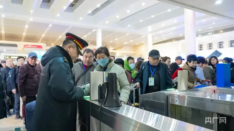 呼和浩特東站客運人員服務游客檢票進站(央廣網發(fā) 楊頤 攝)