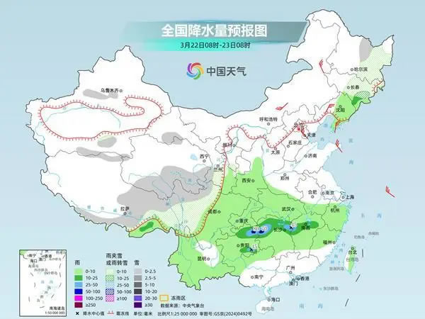 具體來(lái)看,中央氣象臺(tái)預(yù)計(jì),今天,新疆南疆西部山區(qū)、西藏西部和南部、青海南部、川西高原北部等地部分地區(qū)有小到中雪或雨夾雪,其中,西藏西部等地部分地區(qū)有大到暴雪,局地大暴雪。貴州東部、江南大部、華南北部和西部、海南島中部、臺(tái)灣島東部等地部分地區(qū)有小到中雨,其中,江西南部、福建西部、廣東西北部等地部分地區(qū)有大雨。