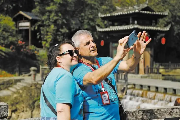 清明小長假期間,外籍游客在峽江春色中感受宜昌之美。(宜昌市文旅局供圖)