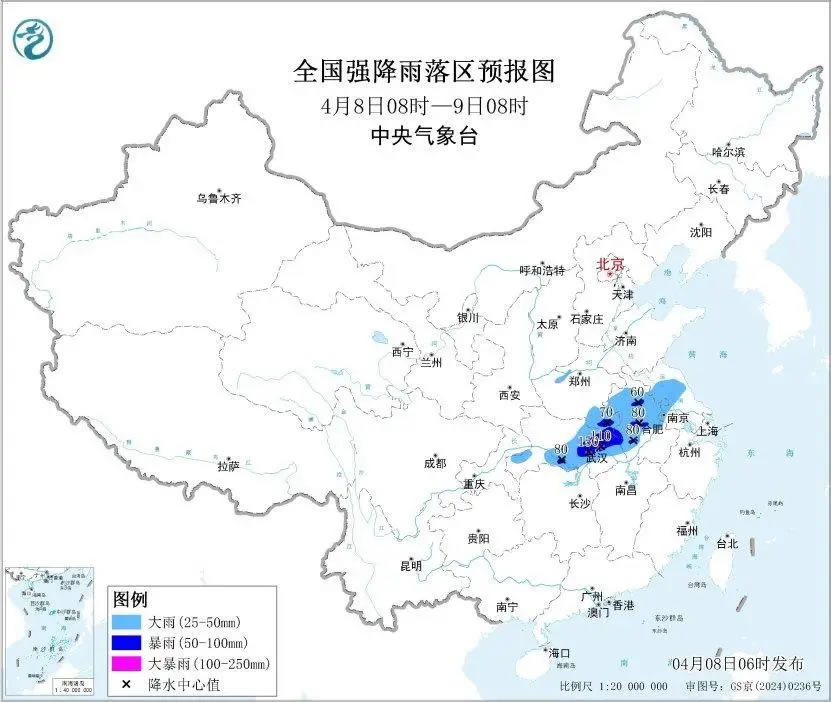 中央氣象臺4月8日6時發(fā)布暴雨藍色預警:
