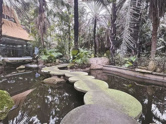 走進(jìn)植物園棕櫚植物區(qū),在導(dǎo)航軟件搜索“棕野云澗”,循著指引便能看見一串圓盤狀石橋貼著水面蜿蜒向前,橋邊棕櫚高低錯(cuò)落,粗壯樹干與垂落枯葉交織出一片幽深景致。站在橋頭細(xì)看,熟悉感撲面而來——這正是最近被不少網(wǎng)友反復(fù)“考古”的1986版《西游記》取景地之一。不少網(wǎng)友留言說,“看了這么多年《西游記》,第一次知道竟然在廈門拍過”“怪不得植物園這么眼熟”。也有一些本地人表示,這并非“冷知識(shí)”,只是時(shí)間過去太久,許多人一時(shí)沒把童年記憶和眼前景象對(duì)上號(hào)。