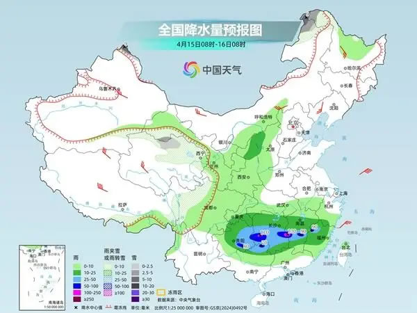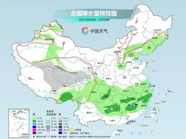 預計未來三天,南方降雨較過去幾天有所減弱,但范圍仍廣泛,同時青藏高原多地仍有明顯降雪。中央氣象臺預計,今天,新疆阿勒泰北部和南疆盆地、西藏北部、青海東部和南部、甘肅河西和南部、川西高原北部以及內(nèi)蒙古中部、黑龍江北部等地部分地區(qū)有小雪或雨夾雪,其中,新疆阿勒泰北部、西藏北部、青海西南部等地部分地區(qū)有中到大雪;西藏東南部、四川盆地西部、西南地區(qū)東北部、江南大部、湖北南部、廣西北部等地部分地區(qū)有中到大雨,其中,湖南東南部、江西東北部等地局地有暴雨。