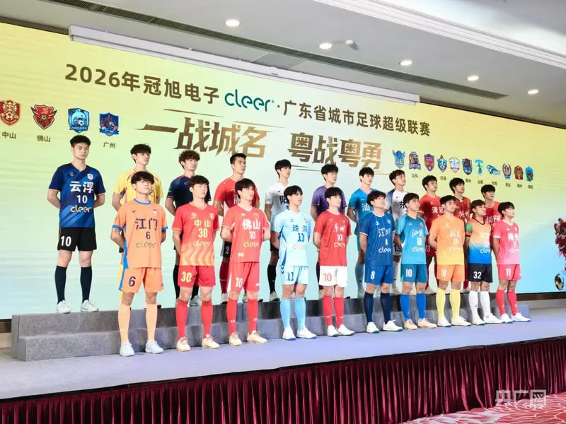 在吹風(fēng)會現(xiàn)場,21個地市代表隊的隊徽和比賽服逐一展示。各具地域特色的設(shè)計,充分展現(xiàn)出廣東百花齊放的足球文化與深厚綿長的足球底蘊(yùn)。組委會特邀容志行、池明華、彭偉國、郜林四代廣東足球名宿,現(xiàn)場為2026粵超打Call。