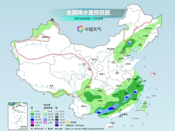 中央氣象臺(tái)預(yù)計(jì),今天,內(nèi)蒙古東北部、黑龍江西北部、新疆北疆北部和南疆盆地、青海北部和西部、甘肅河西等地部分地區(qū)有小雪或雨夾雪,其中,新疆北疆阿勒泰山區(qū)部分地區(qū)有中到大雪,局地暴雪。貴州東部、江南中南部以及西北地區(qū)東部、華北等地部分地區(qū)有中到大雨,其中,湖南中部、江西中南部、福建西北部等地部分地區(qū)有暴雨,局地大暴雨。