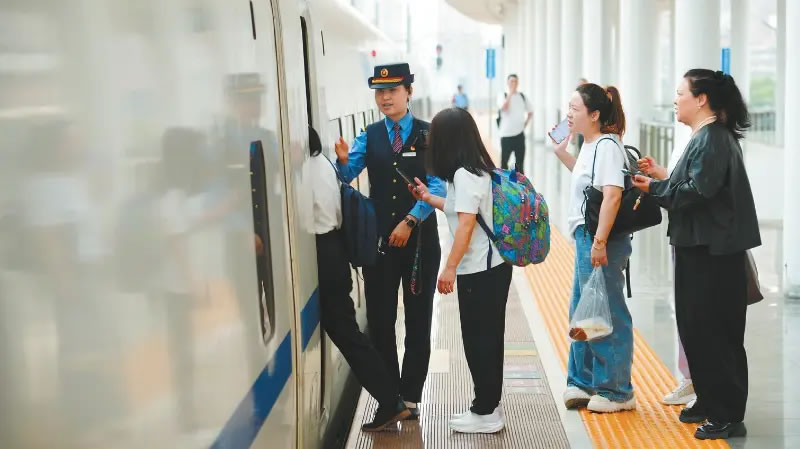 當(dāng)日,龍巖站候車大廳內(nèi)暖意融融,不少旅客早早抵達(dá)等候,滿懷期待地準(zhǔn)備搭乘首趟提速列車。旅客陳紅釵難掩喜悅之情,她表示,動(dòng)車提速切實(shí)減少了大家的旅途耗時(shí),出行變得十分便捷,自己在買票時(shí)偶然發(fā)現(xiàn)提速信息,便特意選擇了這趟列車。從事商貿(mào)工作的旅客吳迪也坦言,以前往返兩地需耗時(shí)三個(gè)多小時(shí),抵達(dá)時(shí)通常已至下午,此次提速極大便利了經(jīng)常往返兩地的生意人,能有效提升事務(wù)處理效率。龍巖站客運(yùn)綜合班組長(zhǎng)姚鳳君介紹,此次提速不僅大幅縮短了運(yùn)行時(shí)間,更優(yōu)化了發(fā)車時(shí)段,龍巖至福州9:19發(fā)車、11:38抵達(dá),福州至龍巖18:20發(fā)車、20:39抵達(dá),精準(zhǔn)貼合群眾通勤、探親、旅游、求學(xué)等多樣化出行需求,讓便民服務(wù)更有溫度。