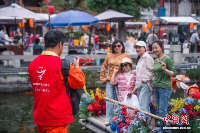 志愿者為游客拍照。季維娜 攝